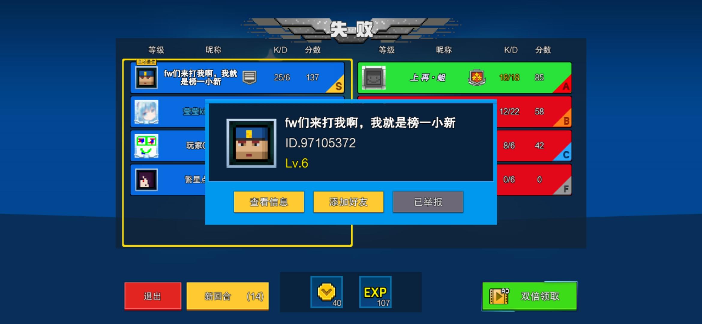 官方,你应该修复一下你的。外挂防护系统了。现在在b站上搜索像素射击都有好几个教修改器外挂了。好像有个叫云云修改器。上次打游戏,又遇到一个锁血。打他准心都红了。就是没伤害,也没有震动反馈。是遇上bug了,还是外挂?