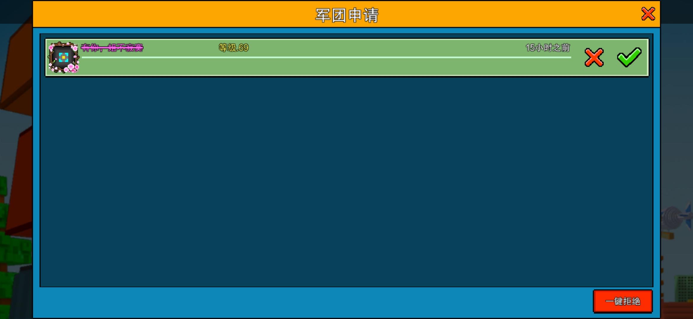 这两天每次打开游戏都有这人的申请,我已经同意了不下十次,但回回都是该玩家已加入其他军团。我人都傻了