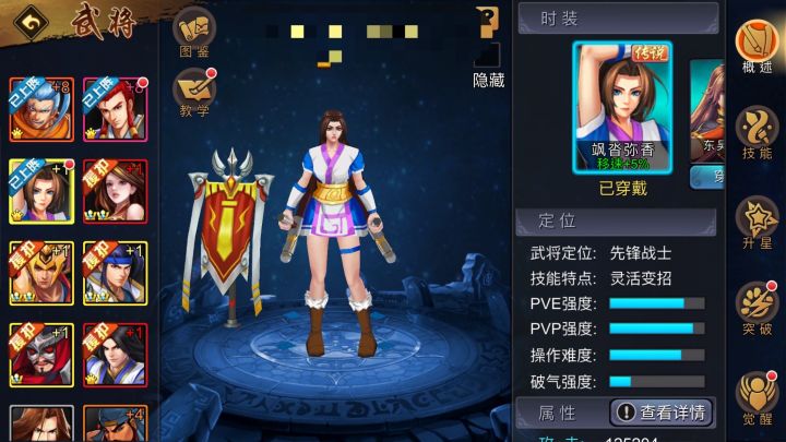 阿香的技能特点是灵活变招,只要发现起手没有击中目标,那么可以灵活选择中断技能的二次释放,。当然了,极少有武将能够全方位兼顾,获得“六边形战士”的美誉。阿香的破气强度稍微有点弱,这意味着她在秘境图中不是最佳的破盾武将。