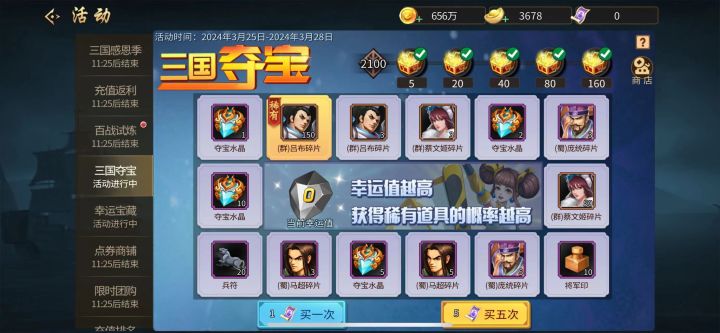 #大神答疑##攻略分享#今天活动最后一天,正如大家所说的:马谡可以不用但不能不买的!马谡前几天我作了一个实测后的评价,想必大家有意向入手的今天可以买一些碎片招致麾下了.很多人问我怎么看援军吕布和蔡文姬,其实得陇望蜀的心态我能理解,但是话说回来,我个人感觉如果你单纯看中吕布和蔡文姬的能力的话,还是建议一般玩家不要购买了,毕竟吕布展现出能力必须要经过后天的培养,有人说吕布60万兵符升一次,后期刀刀冰,