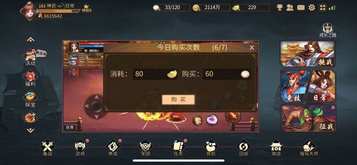#攻略分享##攻略分享#额外收益、按需购买建议大家每日任务有选择性的多买一次,例如:天书秘境(按需购买次数)尽管没有双倍收益,但选择自己即将升星对应的天书秘境,可以让你先人一步达到升星效果,百兽攻城(花费100元宝)可以让你拥有更多的机会抽到橙**腾,运气够好还可以搞到金色(大赚),战役副本每日花费30-100元宝,购买一次次数让你更加接近红色饰品,除了这些你还可以根据自身的需要考虑是否购买体力