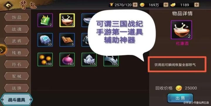 #大神答疑##攻略分享#战斗道具谱排名第一位:杜康酒(如今的盛怒汤)关键字:怒气源泉,瞬间满满怒气,副本助攻带飞队友的第一利器实用性:五星稀缺程度:五星出产地:第一次通关副本2-8、3-10进入密室可获得;特定的字卡活动中可以卡兑换“随机道具”宝箱,有几率开出,一年难得有两次这样的机会。上榜理由:杜康在手,怒气我有。副本助攻队友的一大神器!怒气又是释放大招和超大的源泉,平时我们副本收集四