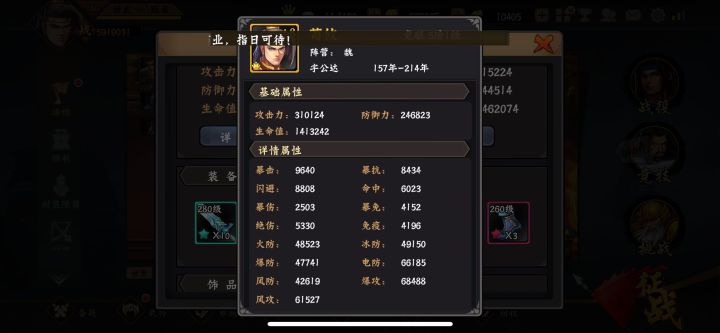 攻击力、防御力、防御力这三个最基础的属性,与武将内功培养和各大装备版块强化,息息相关,贯穿着角色外功和内功培养的方方面面。攻击力是一切伤害的基础,是输出时的直接伤害,不管是技能或者普攻都是直接打出去的伤害,这也是为什么玩家对攻击力趋之如骛的缘由所在,高攻击是确保高效输出的先决条件。武将面板详情属性包含:暴击、抗暴,命中、闪避,暴击伤害、暴伤免疫,绝对伤害、伤害免疫8种常规属性,以及各类元素属性