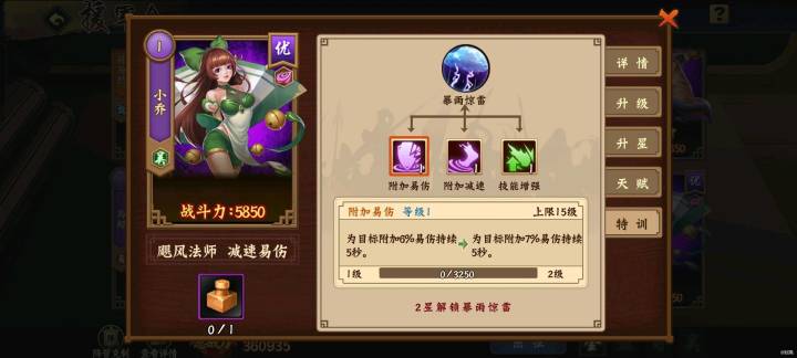 特点:1星后激活大招,带吸附和易伤效果,随着特训技能的养成,吸附和易伤效果会增强;优势:吸附带一定的聚怪效果,辅助集火群伤,5秒百分比易伤(易伤特训只加强百分比,持续时间都是5秒),召唤出场释放两个大招就带10秒的易伤效果,组队双方均带援军张郃,双向互切,对整体输出效率的增益,那确实是妥妥的;运用前景:在蓝色改版前张郃绝对是蓝色品质援军的话事人,毕竟带吸附、破倒地、增伤、强控等特性是副本最需要