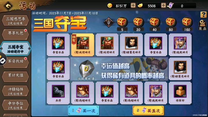 平民元宝如何最大化利用?夺宝到现在也出了2-3次了,必出150碎片稀有大奖基本都得抽够300次,也就是元宝花费需要40500。而平民玩家搞援军基本靠拆家,大部分平民差不多饰品基本40一套(老区有些玩家靠时间可能有个别50或者45一套,但是主流还是40套饰品为主)。也就是说全套40饰品全拆了所得元宝有112416。按照一次援军令夺宝需要40500,基本平民玩家搞3次援军令夺宝家当就见底了。那么