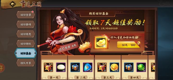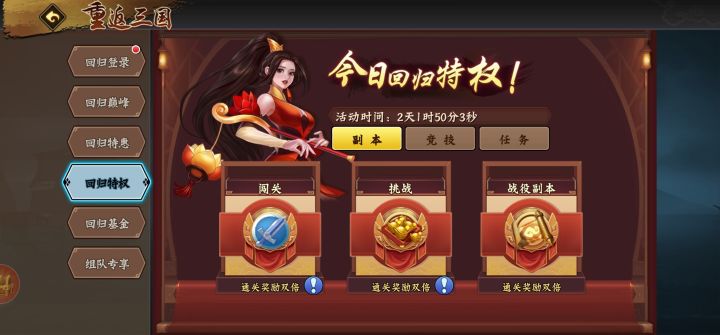 看到论坛玩家发帖询问,特地抽时间做这个帖子,新手玩家,有不懂的就发帖问。关于回归,一般建议16天以上,避免翻车,例如今天17号,那么你就算作18号回归,下个月3号上,如果你能熬夜,最好3号晚上12点上,这样可以等于回归11天,当天的任务去做,也是双倍。----第一次回归15天时间,第二次需要半年没登录,才可以回归,回归后。奖励10天时间的秘境双倍,宠物双倍,百战双倍,副本双倍,噩梦双倍,精