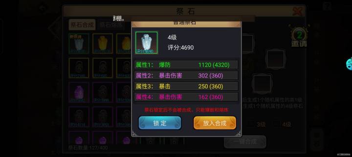 2粒还不错的石头,直接800爆伤单手,可以堆到我的副本方案