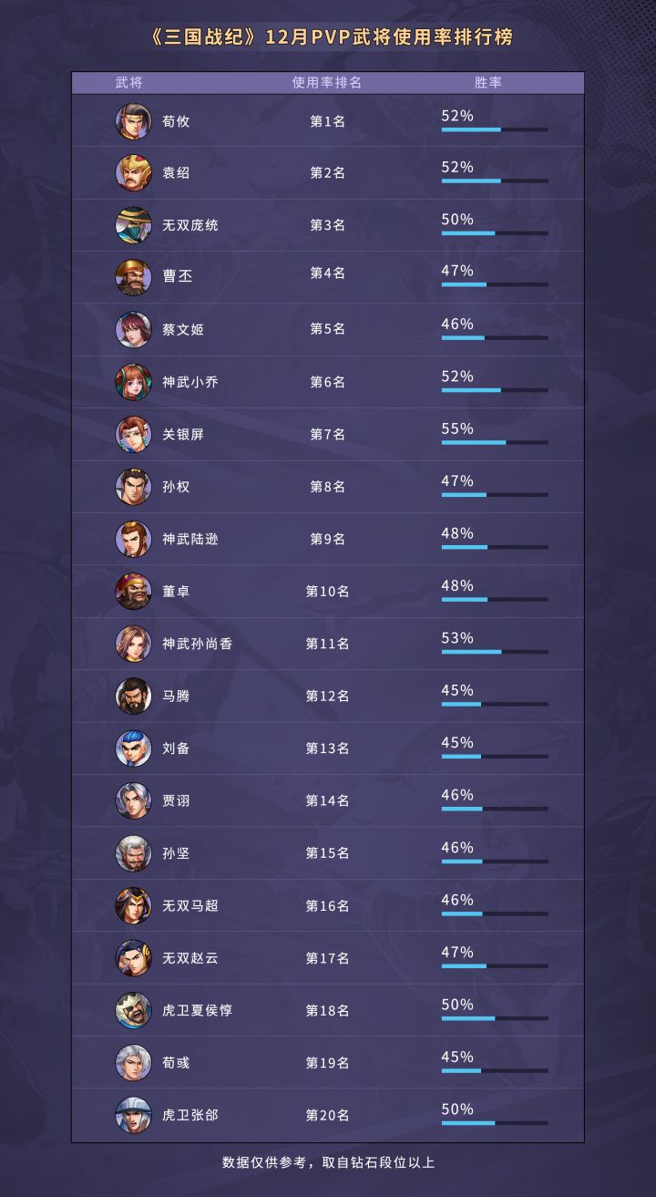 《三国战纪》12月PVP武将使用排行榜