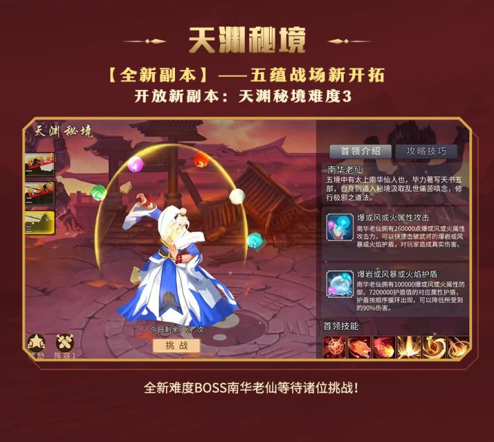 五蕴战场新开拓,新难度BOSS南华老仙等待各位主公挑战!(内容仅供参考,具体以游戏实际上线为准)