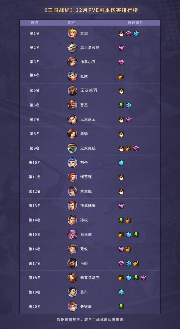 《三国战纪》12月PVE副本伤害排行榜