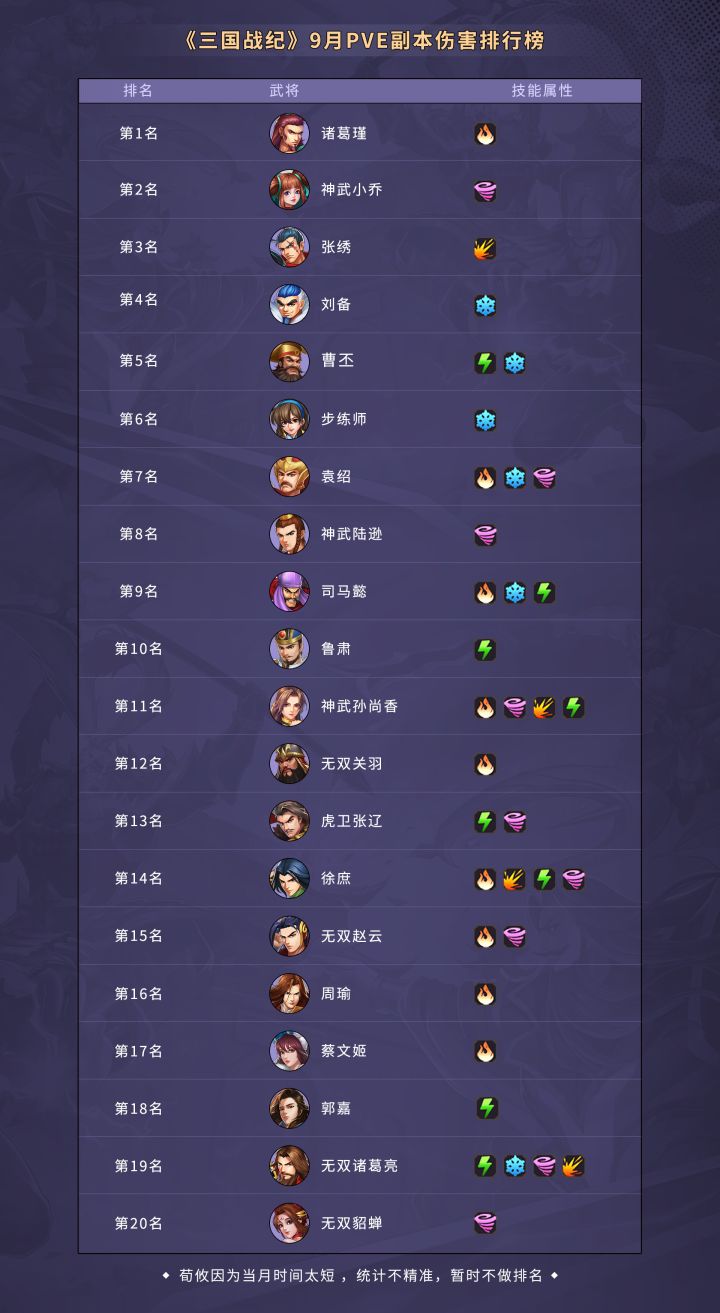《三国战纪》9月PVP武将使用排行榜