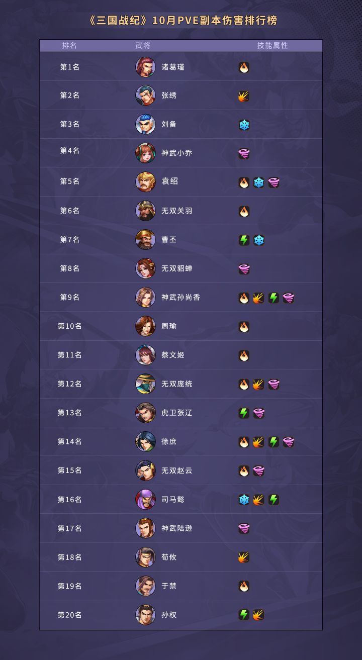 《三国战纪》10月PVE副本伤害排行榜