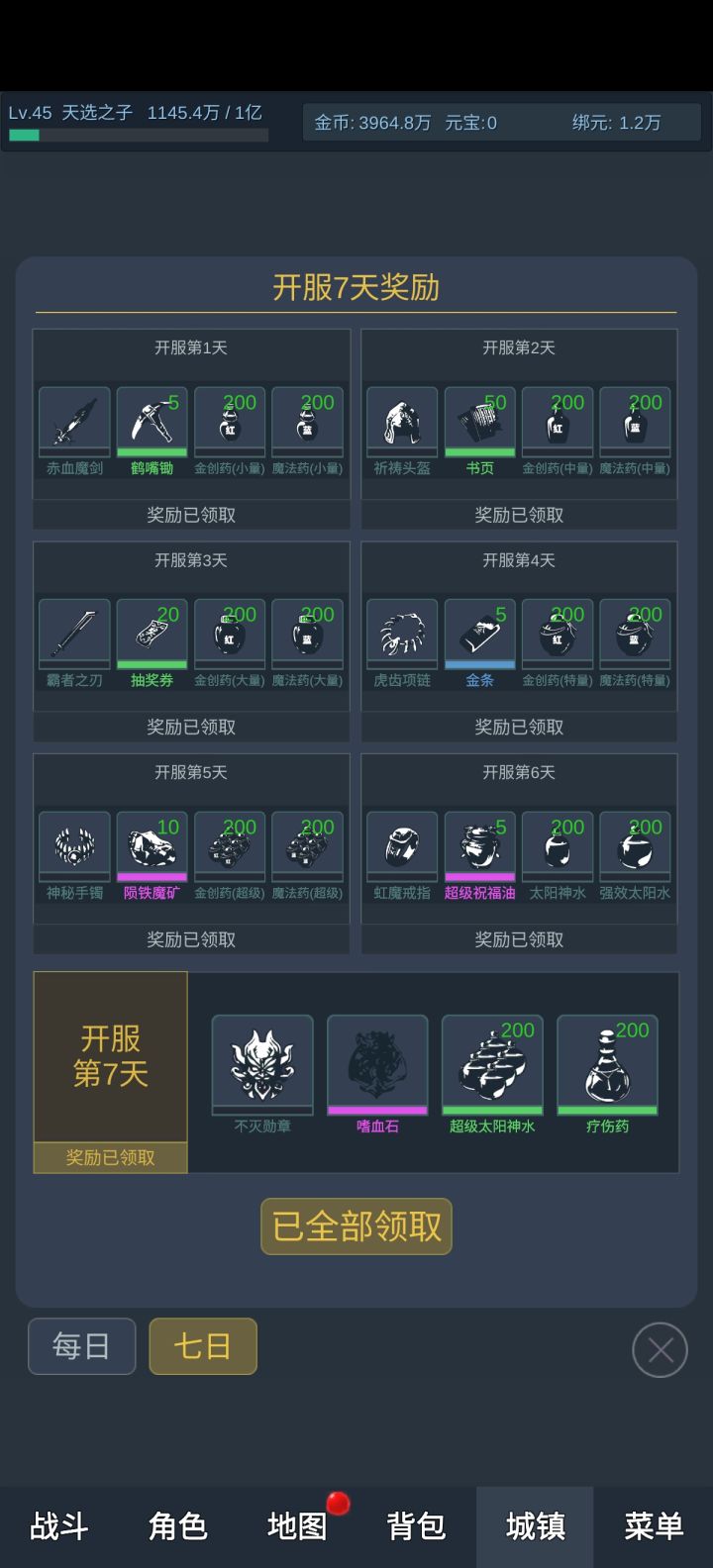 这服说实话挺好的,不充钱照样可以玩的很好,又可以挂机1.进群有兑换码元宝材料什么的2.特戒,技能书,祝福油爬塔都可以获得3.不充钱也可以玩的很好,小极品很多可以越级4.技能特效音效画质也还行,爬塔给抽奖券可以抽出书,也可以打出5.每日领取是可以循环的,领完继续从一号继续领很良心总结0氪也可玩的很好,推荐指数7分