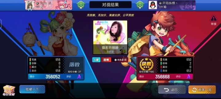 后台后再返回界面卡顿,必须重新进入,对战模式有出现没有歌曲播放的情况。