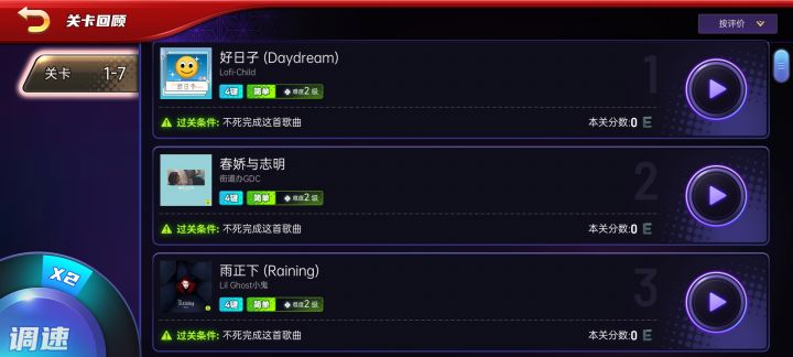 感觉进去游戏的颜色背景可以换一下 ,感觉怪怪的,排版有点不太喜欢,没有娱乐模式了,我不喜欢玩游戏还需要一步步破解 完成第一首才能往下继续玩的,感觉每一首歌的时间都变短了,曲库专辑里面的歌 目前还没有我很喜欢的歌,可以多更新一下,板块的颜色排版真的真的希望可以改一下,不要那么压抑 也不要那么显眼刺眼。
