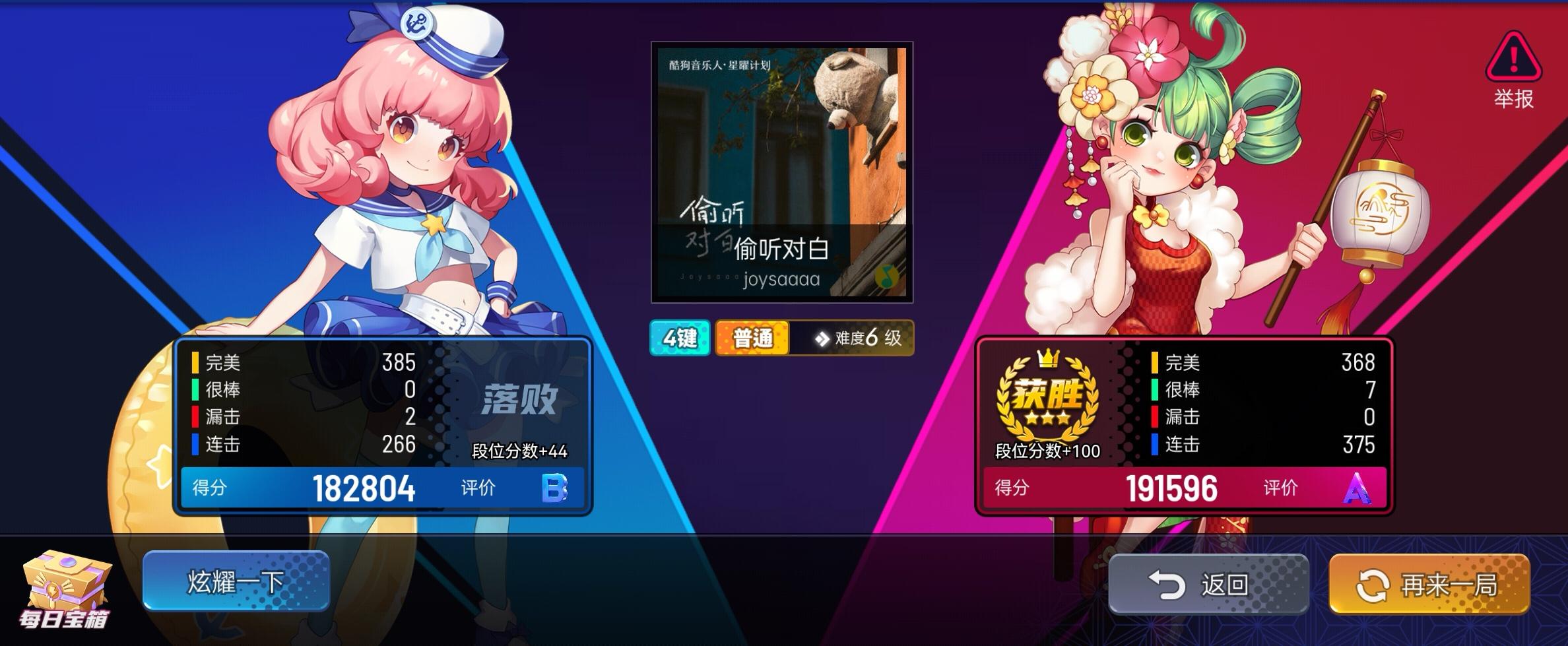 6键模式出现了一些显示bug,希望官方修复 还有对战模式奖励领取栏一直显示目标为达到入门级别,需要修复,谢谢节奏大师官方!