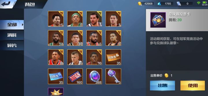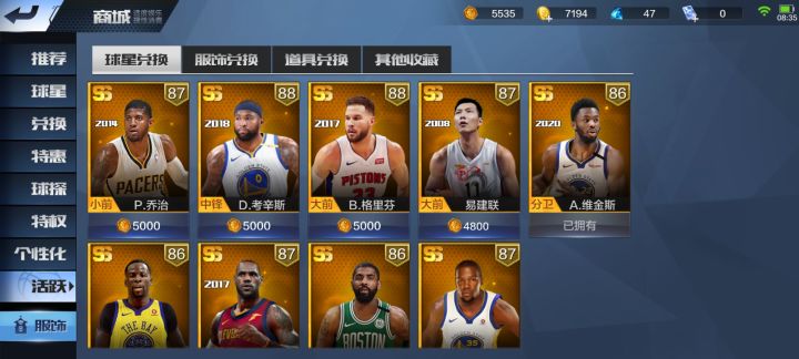 1.全民砍价0点券买了07年邓肯,现在我有两个邓肯。2.活跃值可以买活跃商店球星了,请问买哪个?3.夏日活动出了一个兰德尔,运气挺好。4.今天打了两把排位赛,都输了。不是挂机的就是单打独斗。