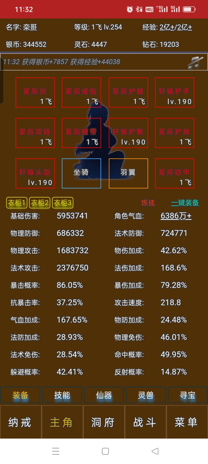 我修炼到了【筑基6层】。主角达到了142级。游戏名字【一瞬星恒】