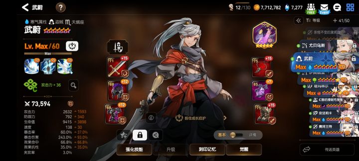 面板游戏里图鉴可以看,这游戏除了倍率还有个pow的修正值,不仅仅影响倍率还影响部分神器追加伤害的增减不过大部分人都差不多不需要特别在意,而且后续并没有出太多的追加伤害的神器。。。我比较懒就说关键技能,没说的你就按普攻100,群体100,单体150来算大差不差,大部分人倍率就这样伤害的差距主要来自面板和技能自带的穿透或者增伤,少部分人还有被动增加面板或者多次使用大招后增伤的特效。小水刺普攻100加
