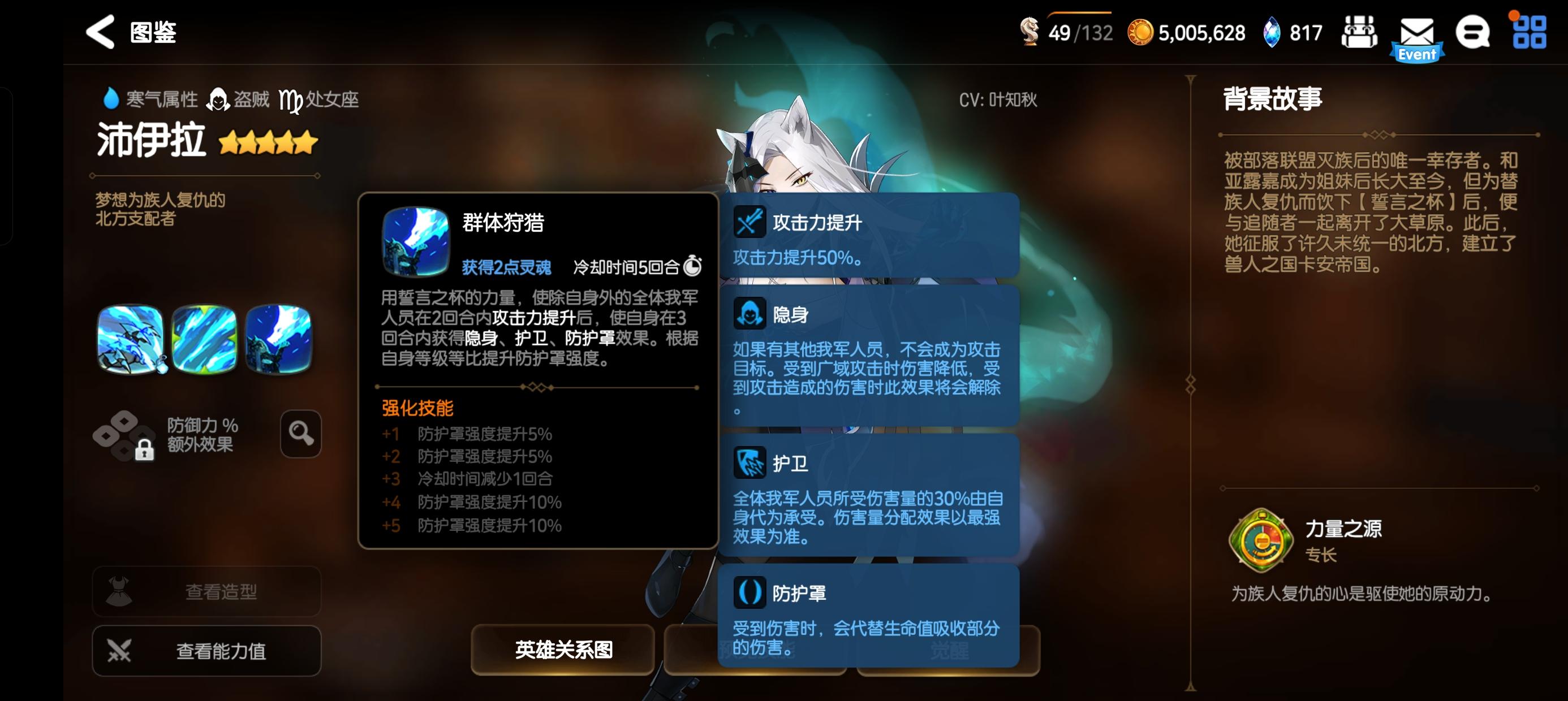 初始128的速度,无法强化加束缚额外回合,大招隐身防护大额免伤,加逆天的护盾(不知道什么叫根据等级加成,按照图里的护盾是200%最大生命值!!!这是bug还是)