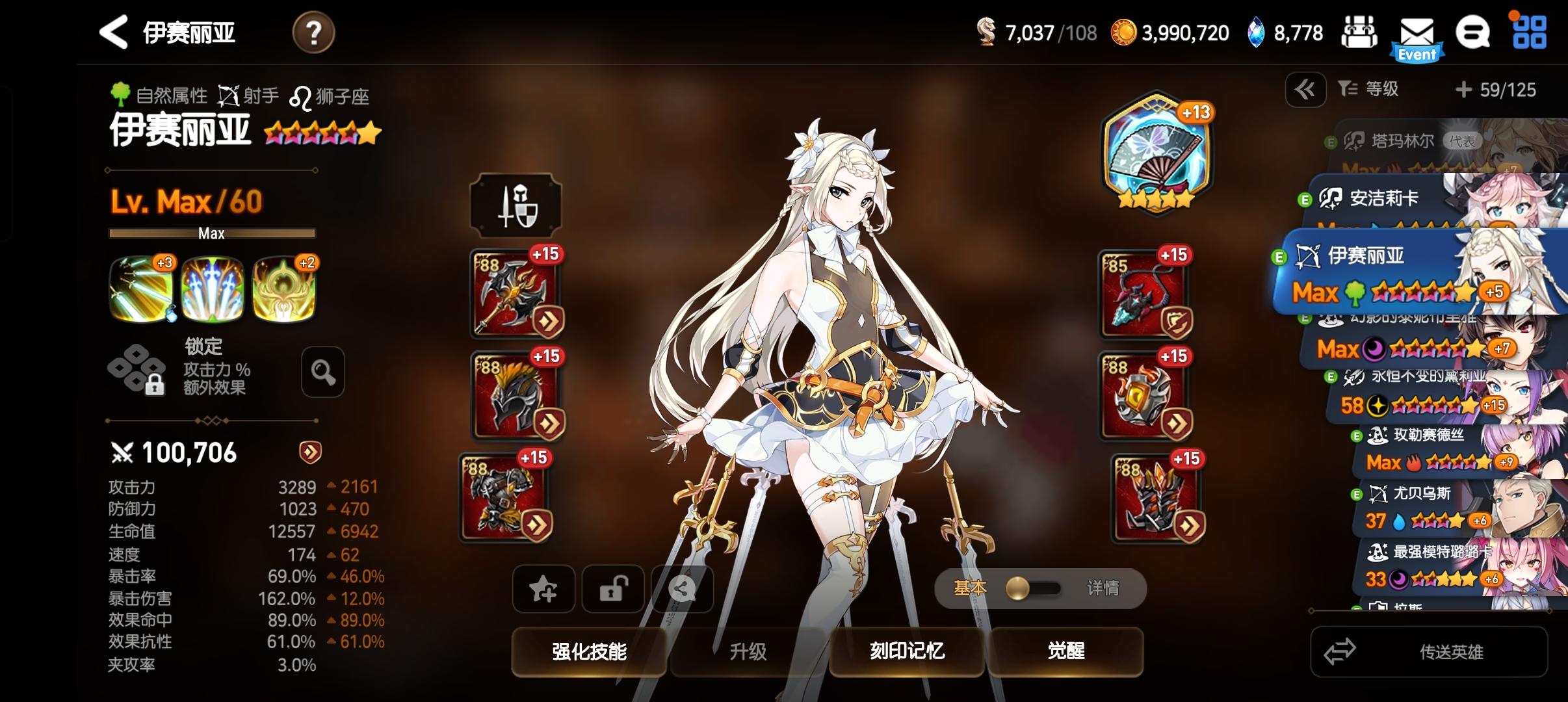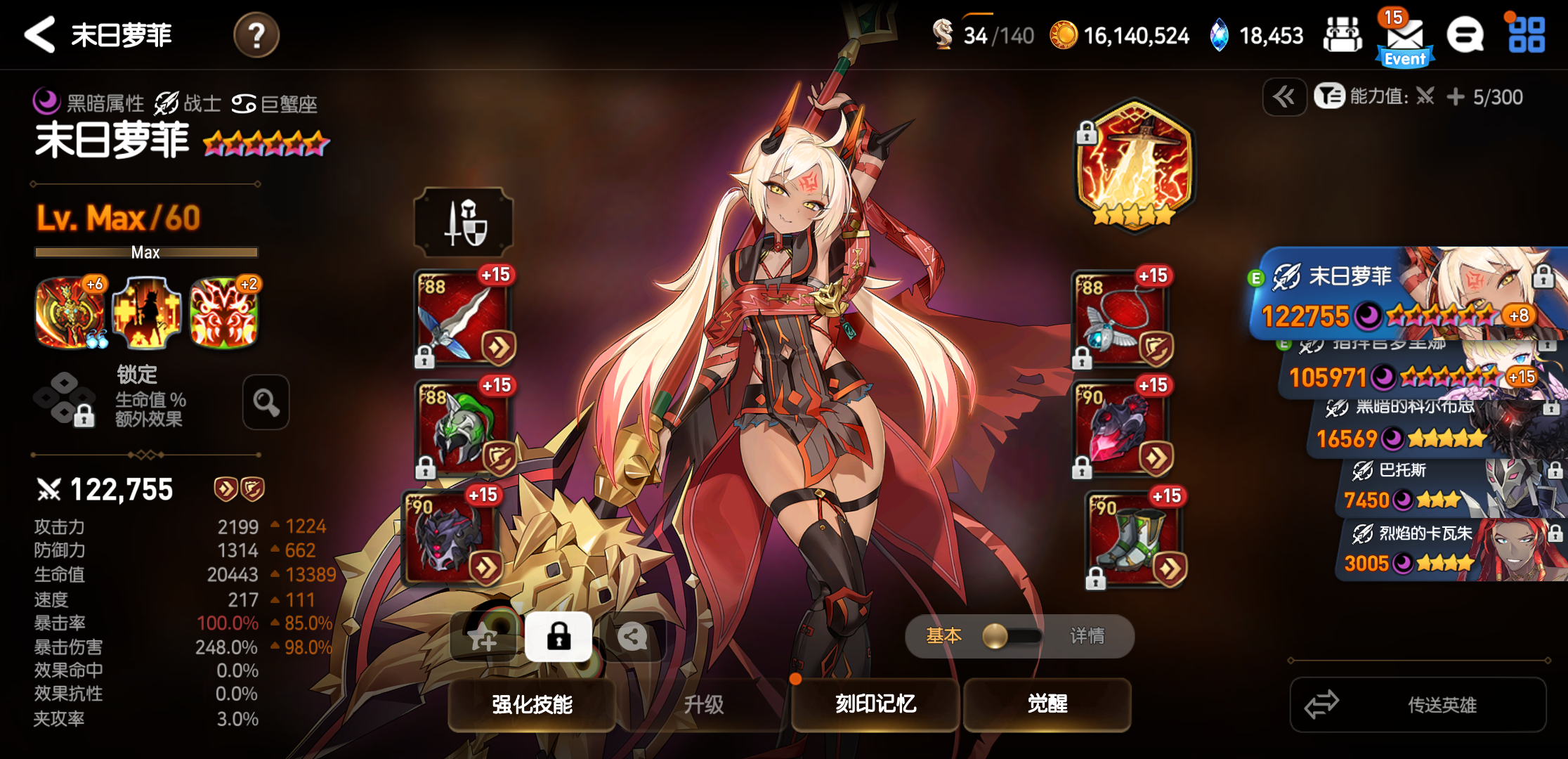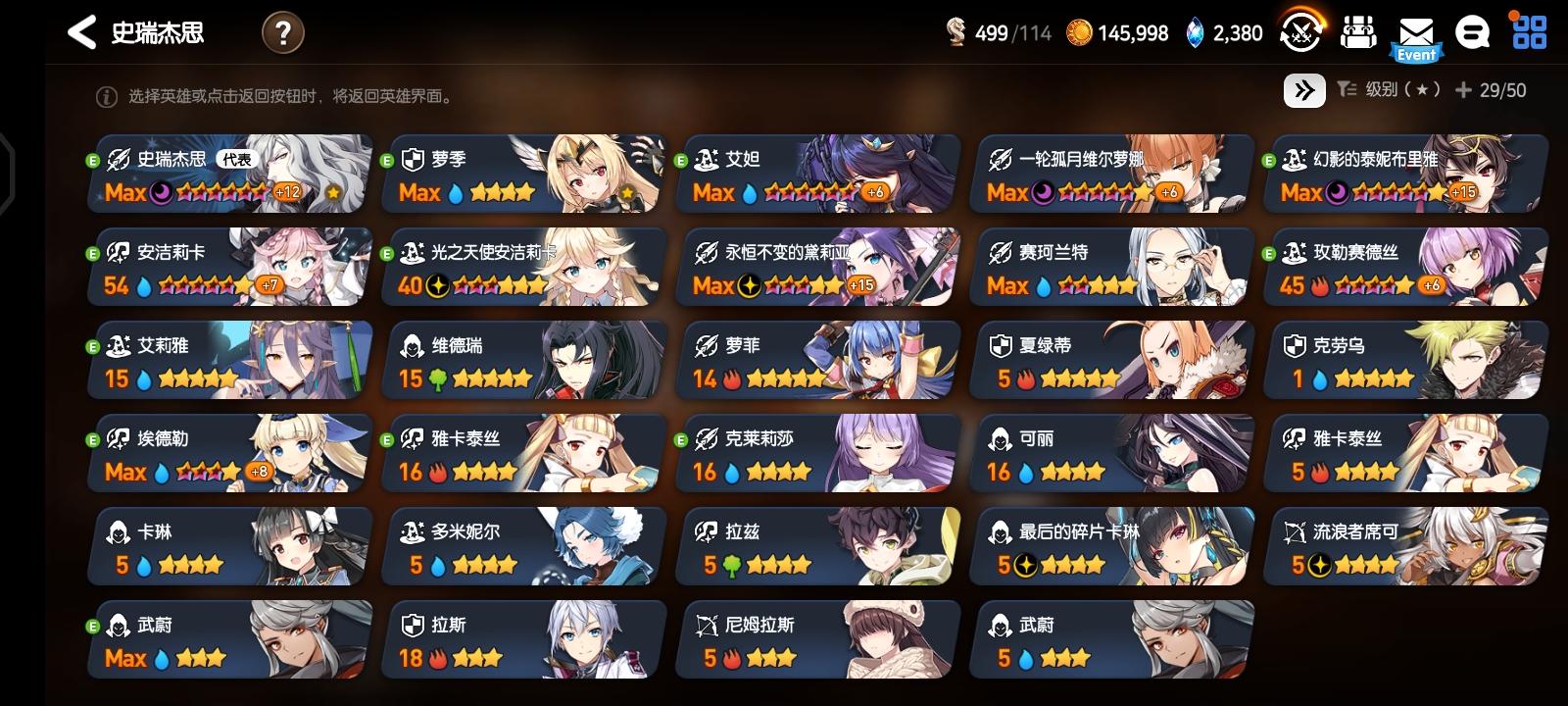 刚开始玩的时候就发现这游戏的女角色好漂亮哦! 后面单抽了几发神秘出了史瑞杰,然后woc 这个角色技能竟然连星球都能看到砍成两半!就一直坚持不懈的培养他,连暗法那些装备都没换了 1、然后开了竞技场,简直无人能挨我这一能砍爆星球的一刀,目前3500分了,渐渐有时候那一刀都出不来,发现我缺少一个能给强化或者好用的破甲工具人,速度命中套都有了,却不知从何下手,下面是我的box,英雄不多,不过有好用的我