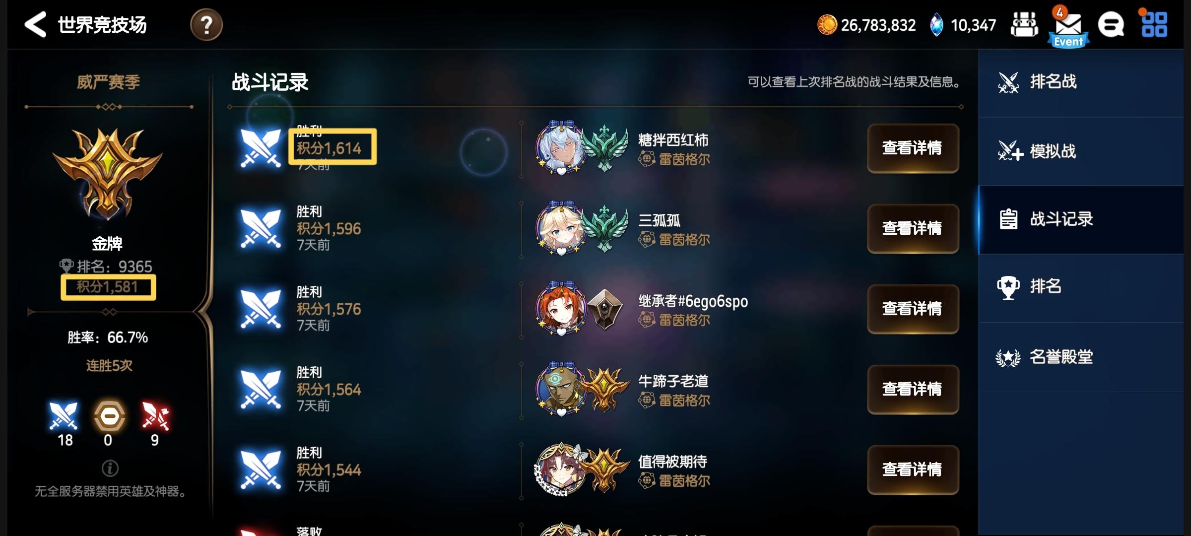 之前我已经打到了1614分了,结果今天一看,只剩1581分了