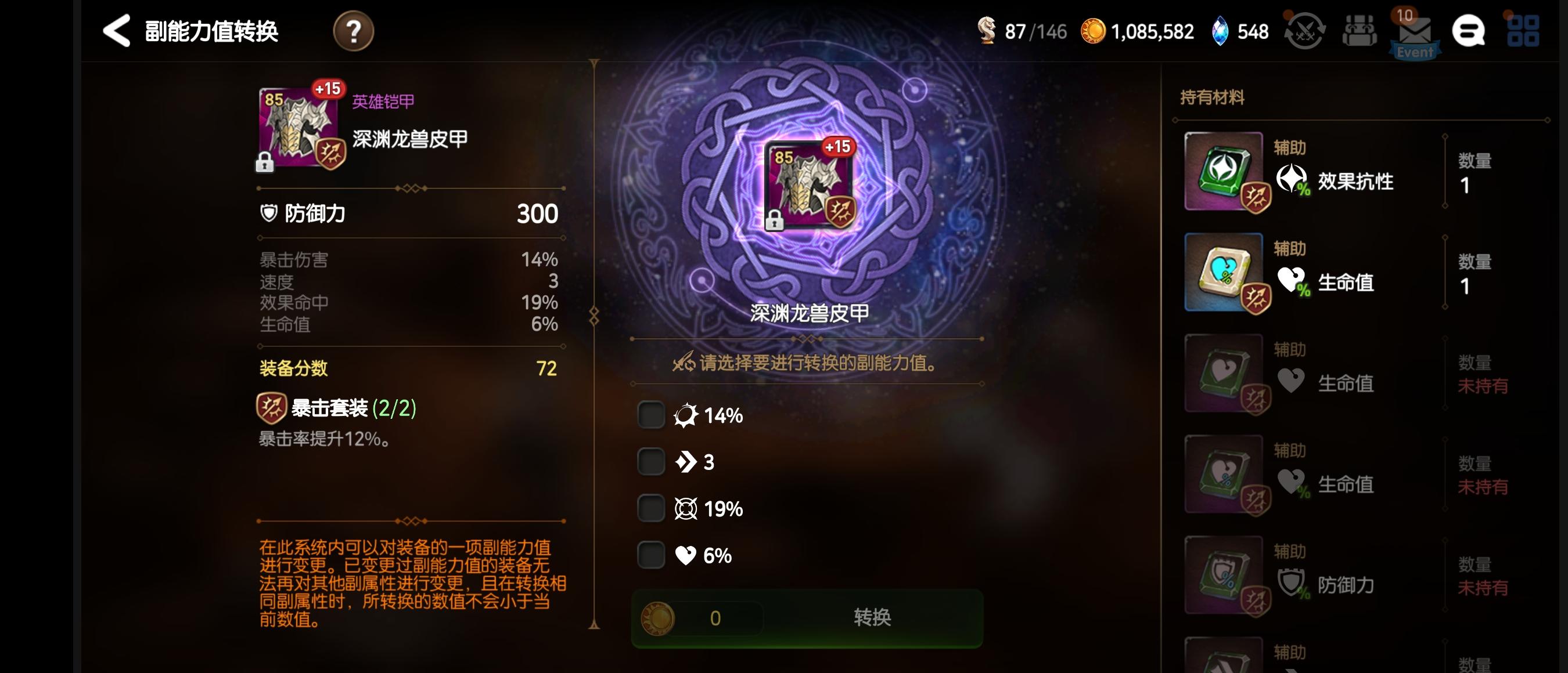 我有上级暴击套攻击比转换石,想把装备生命比转成攻击比为什么转不了,之前的转爆击伤害的都可以啊,知道的指导下。