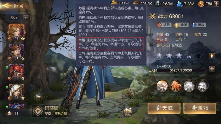 在英雄的五个属性中,幸运属性影响着麾下部队打出幸运一击的几率。在领主们的PVE推图中,幸运女神会时不时垂青你的英雄所率领的部队,帮助他们打出高额的幸运一击伤害。今天我们针对幸运属性和游戏中是否存在所谓的“隐藏幸运一击率”做深入的探讨。(游戏中对幸运属性的描述,英雄玛蒂娜的幸运属性为0)游戏中幸运属性的描述为:提高我方生物在战斗中幸运一击的几率。每1点提高1%。幸运一击:可以造成150%的伤害。
