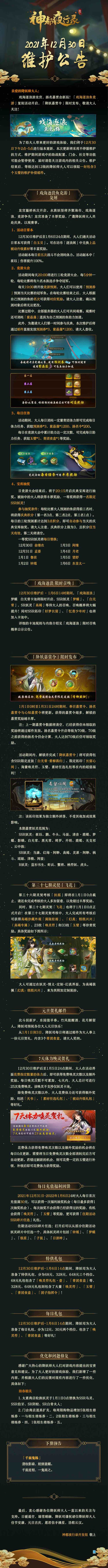 为了给大人带来更好的游戏体验,我们将于2月17日下午2点-5点进行版本更新,本次更新将采用不停服维护的方式,维护期间游戏中的助战配置、门会、社交等功能可能会暂停使用,届时请您关注游戏内的相关公告。维护结束后,等级达到12级的降妖师大人可以领取一封包含3个玉璧的维护补偿邮件。