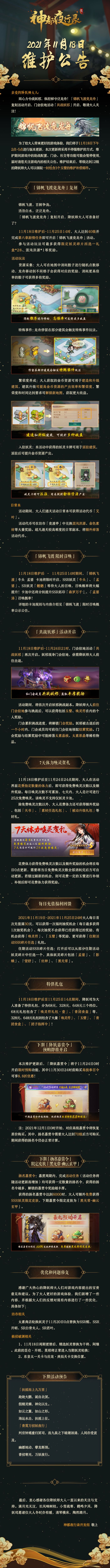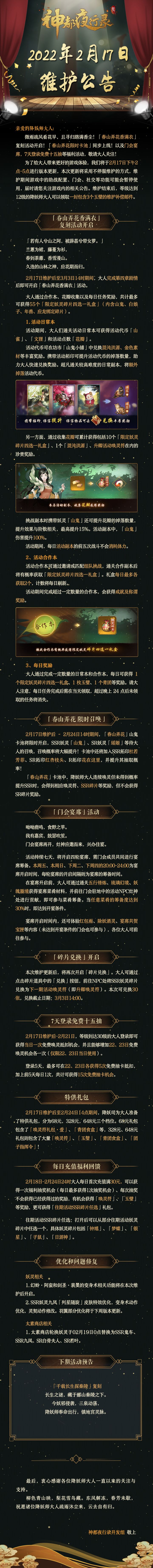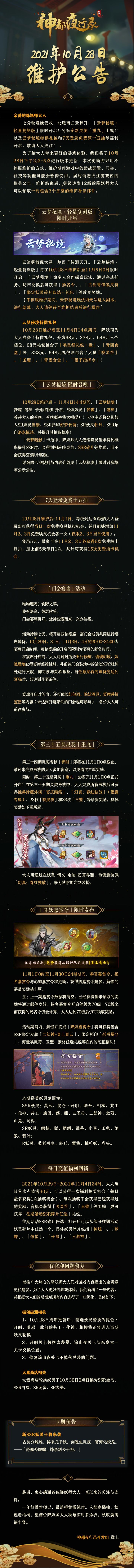 最后,衷心感谢各位降妖师大人一直以来的关注与支持。柳色青山映,梨花雪鸟藏。东风解冻,春芳未歇,祝愿诸位降妖师大人疏雨沐尘来,云去自有归。