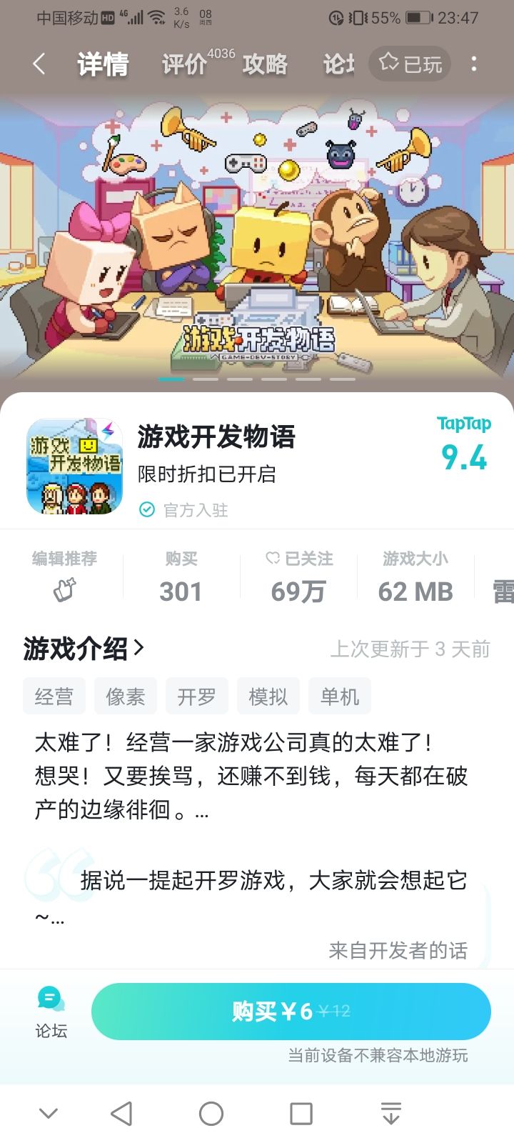 转付费之前的那个免费版本,还能玩的,怎么转付费后就直接给我来个不兼容?
