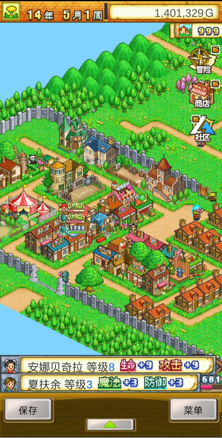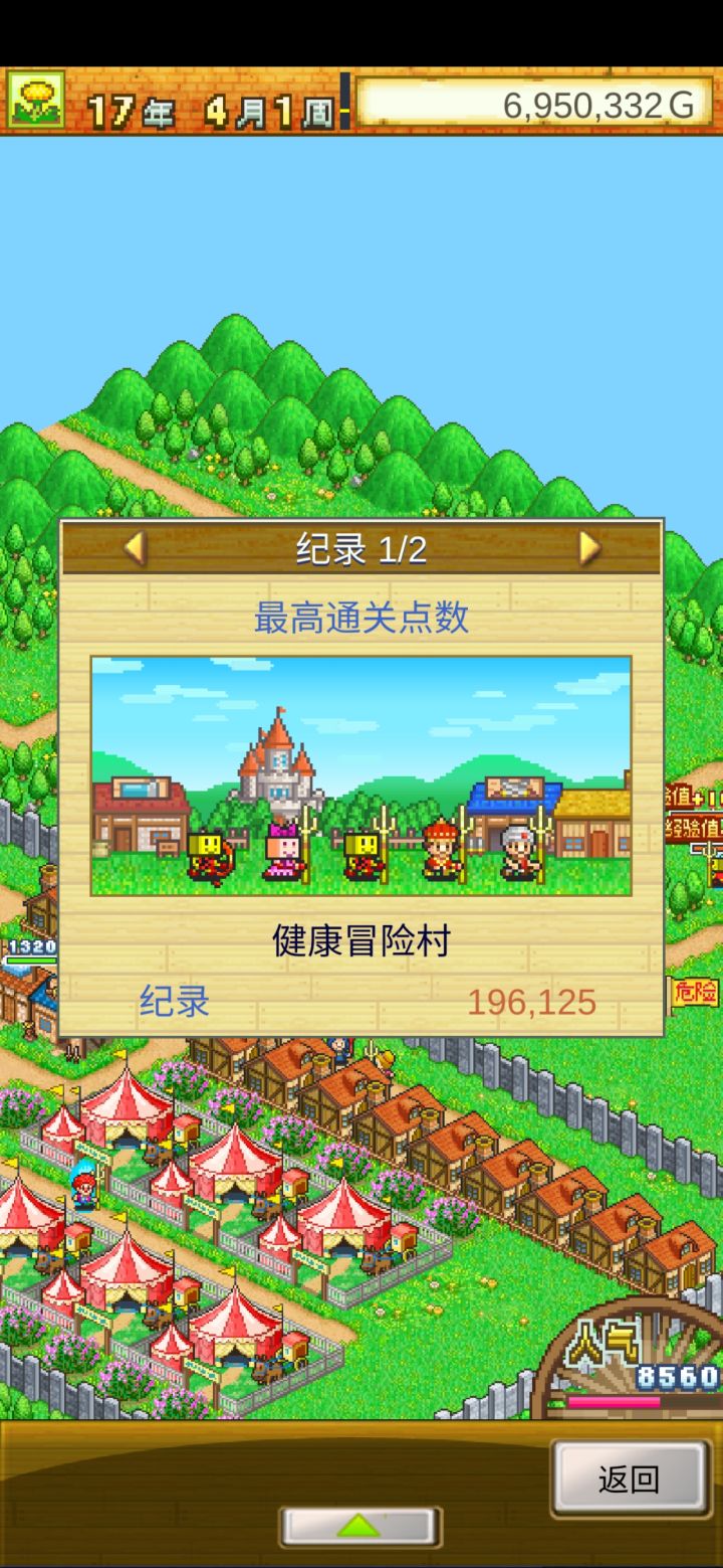 一天通关。说一下个人看法(牟利设施、村落布局、角色发展。):这个游戏通关时间在15年结束,我以为这个游戏通关是打boss……通关后可以继续玩,但是不能继续获取游戏点数;游戏点数可以通过以下几种方式获得:人物角色的高低、人物拥有住房数量、发现建筑物的数量、人物总等级还有两个,记不得了。