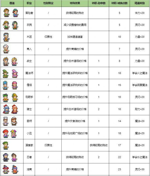 【职业图鉴】职业特殊效果、转职条件、精通奖励一览