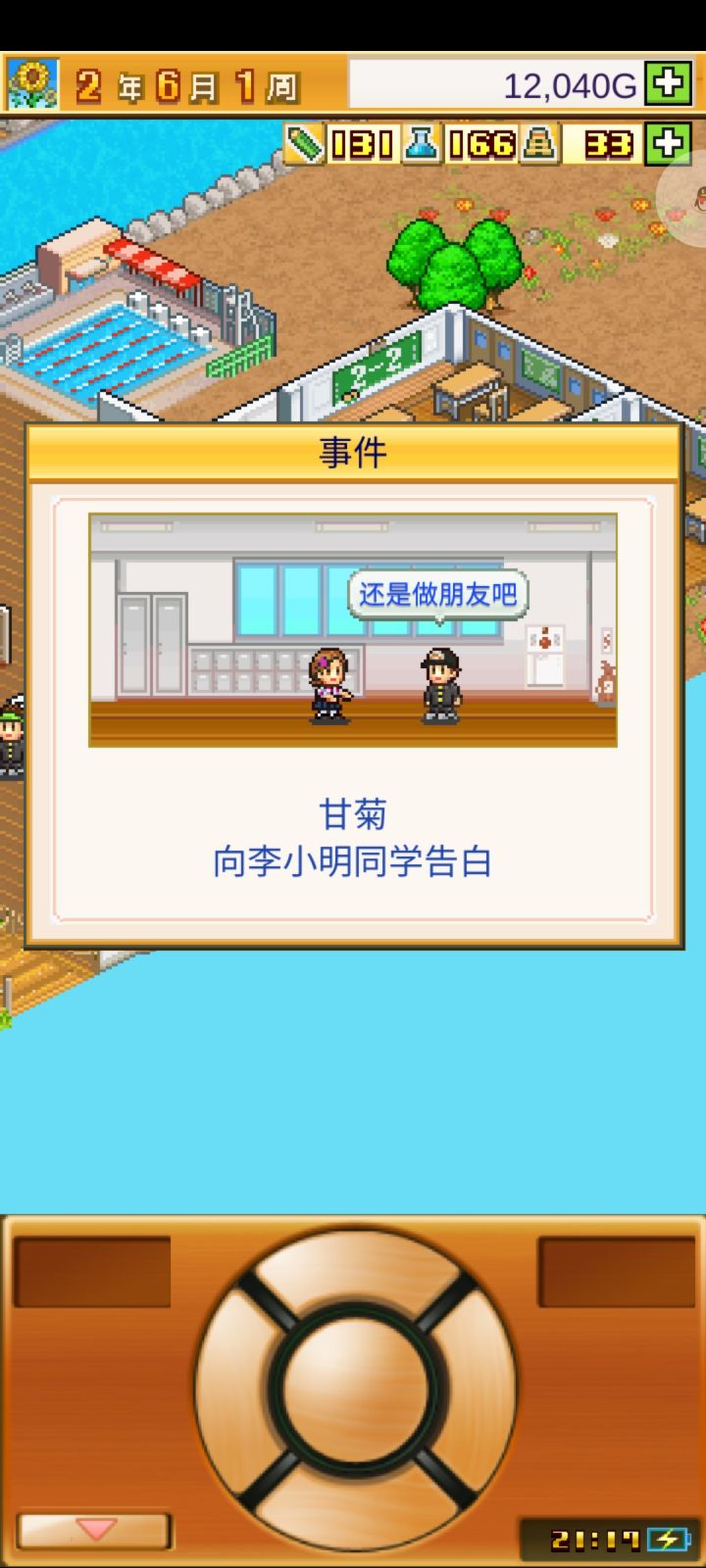记录一下偶的口袋三十一年就匆匆忙忙地到通关点了 感觉还没玩到一半😔一些好玩的表白场景哈哈哈哈河童和木乃伊当学生实在是太奇怪了😖这俩还搞一块了 难以接受 兔子人偶还好 还有匹马也好奇怪p8是我精心打造的环湖小路和水上小岛 可惜过去好多年了一个人也没来过😩