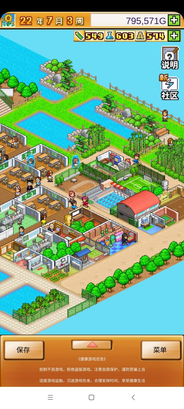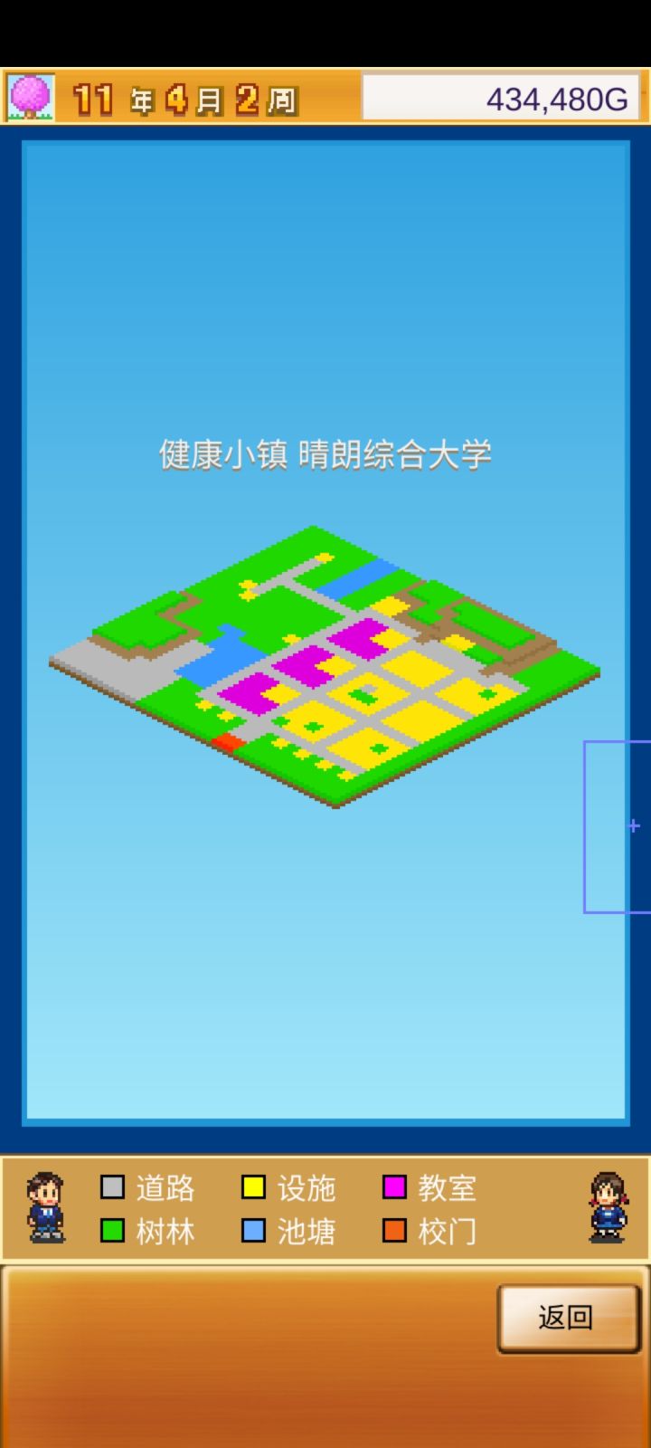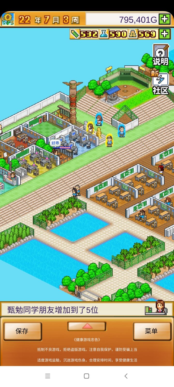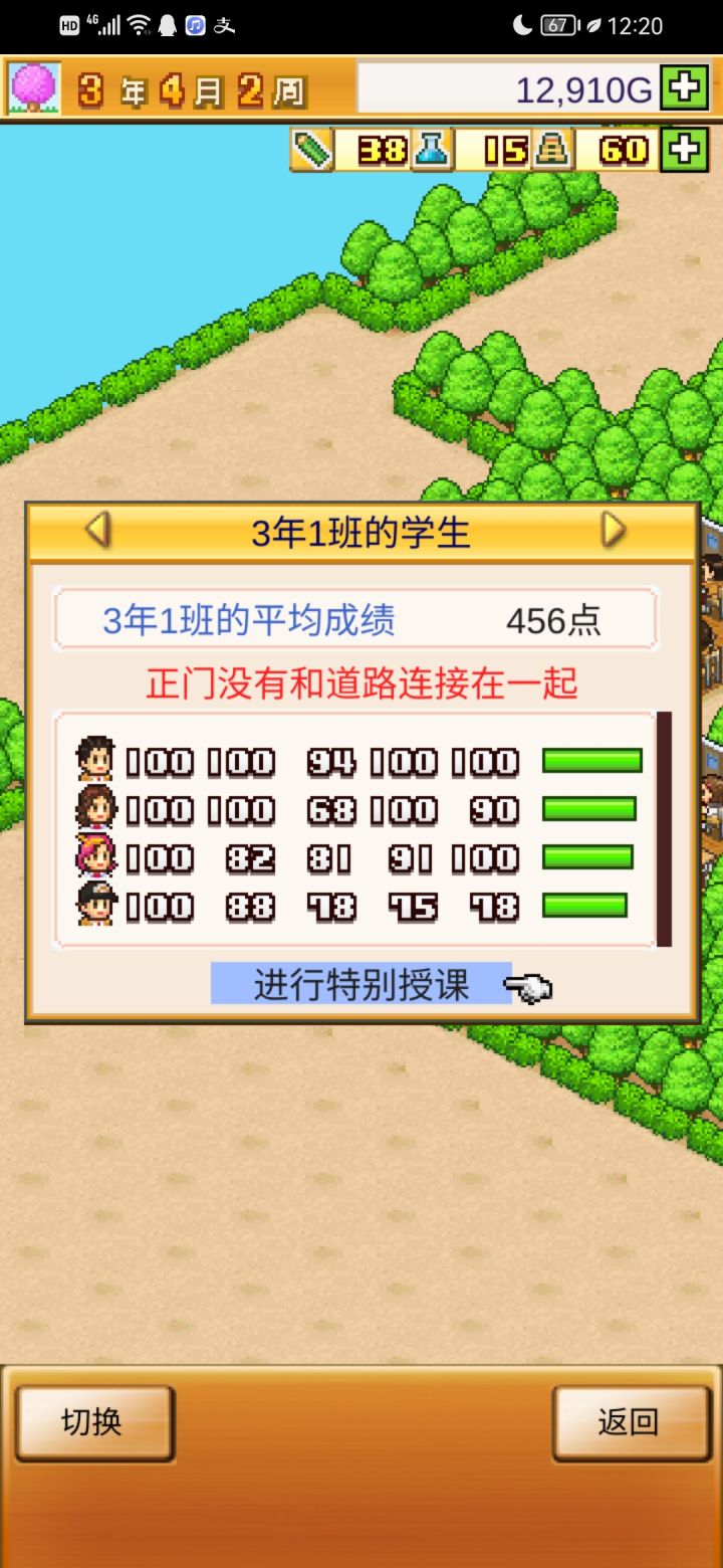 把开局设施都拆了,造下图刚好两个景点,请3个最便宜的老师种田和去小卖部消费,学生关起来自习。全程研究课题升学费。