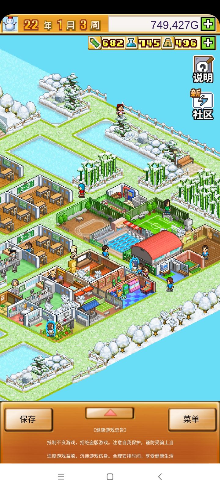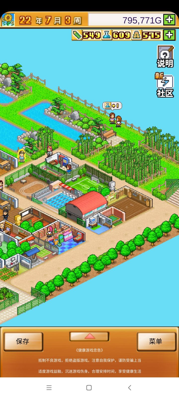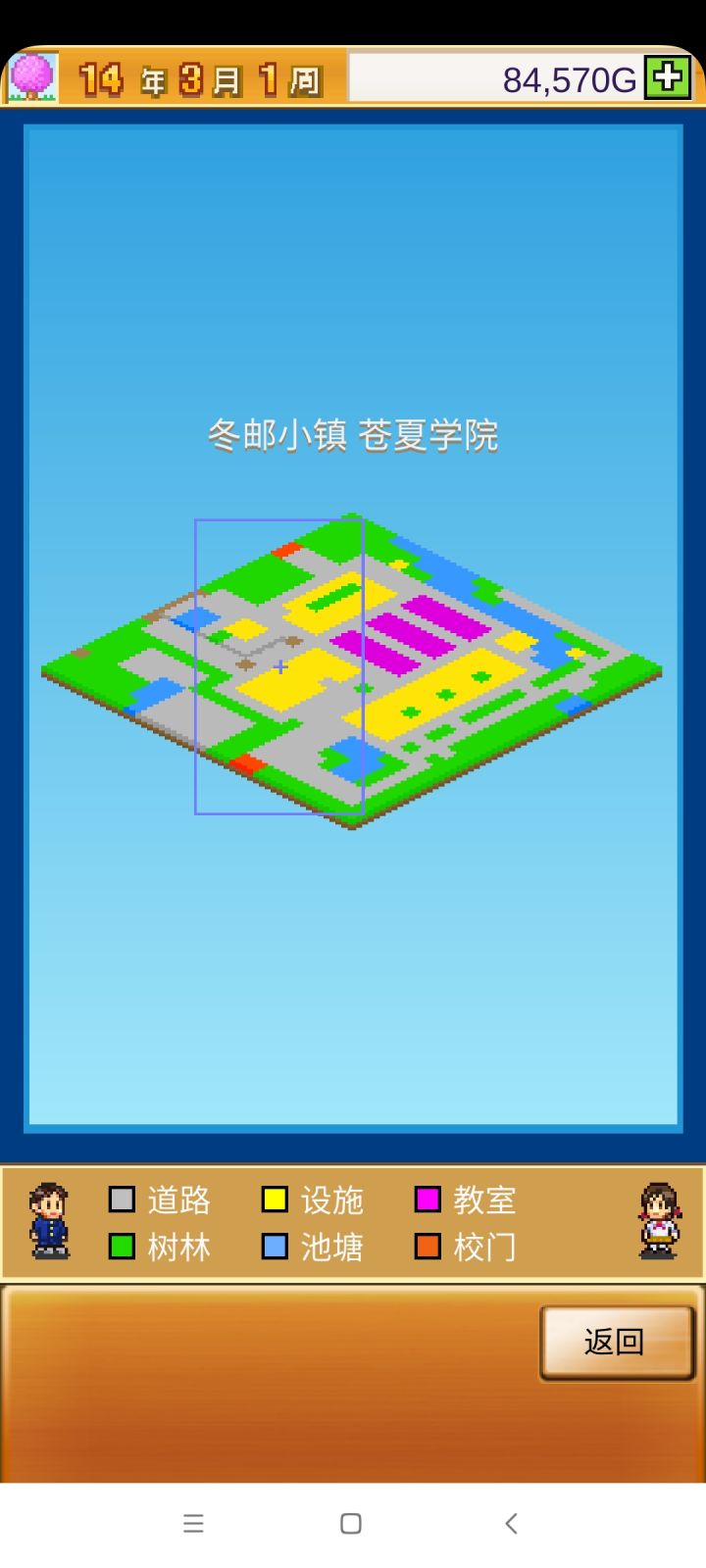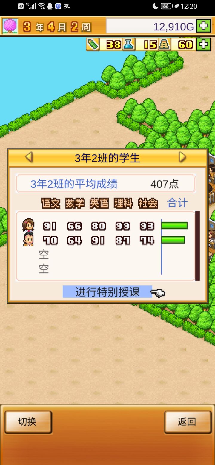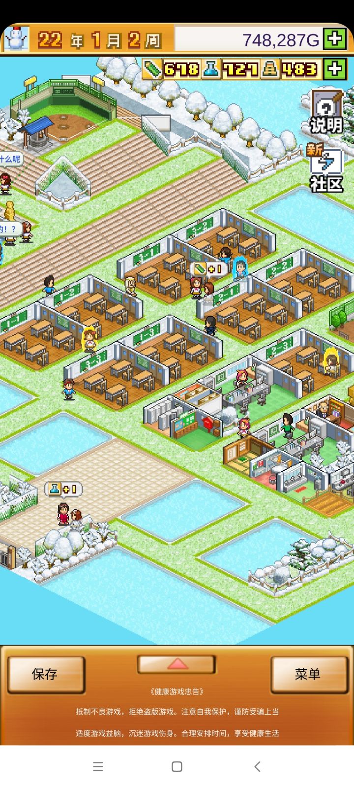 把开局设施都拆了,造下图刚好两个景点,请3个最便宜的老师种田和去小卖部消费,学生关起来自习。全程研究课题升学费。