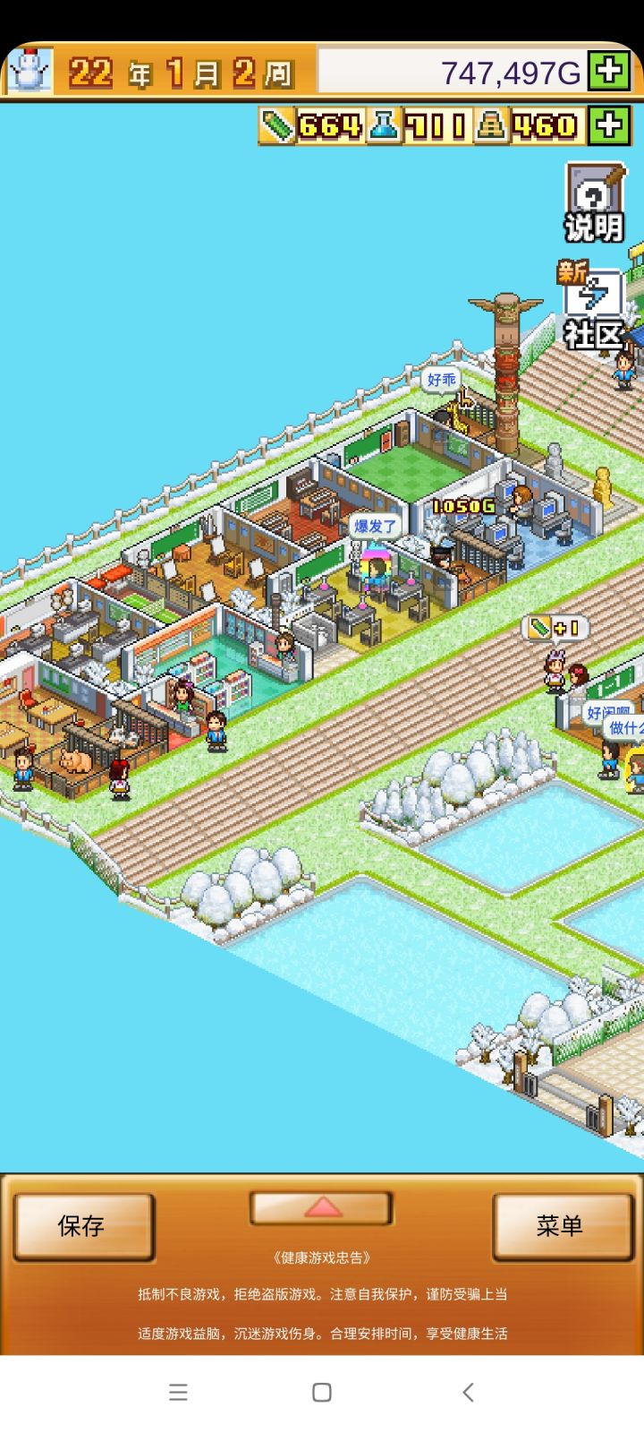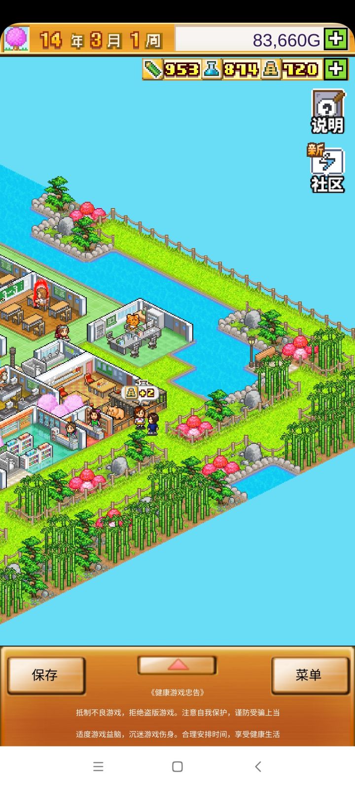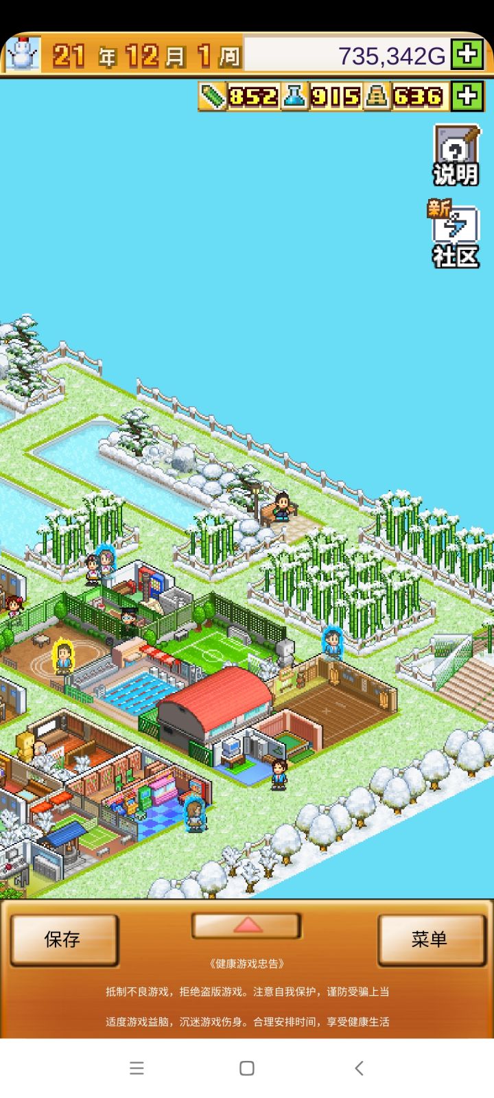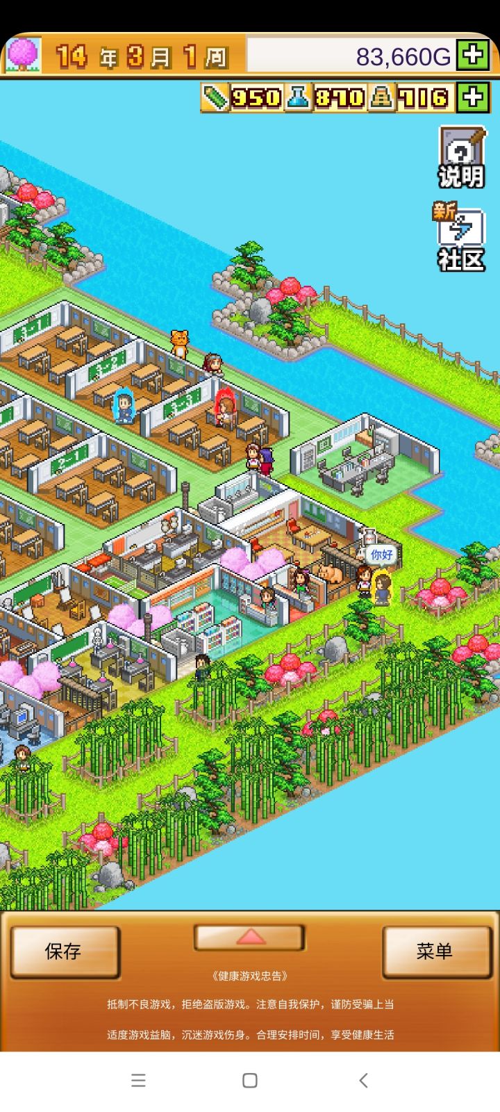 把开局设施都拆了,造下图刚好两个景点,请3个最便宜的老师种田和去小卖部消费,学生关起来自习。全程研究课题升学费。