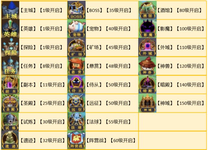1级-150级 玩法介绍简介