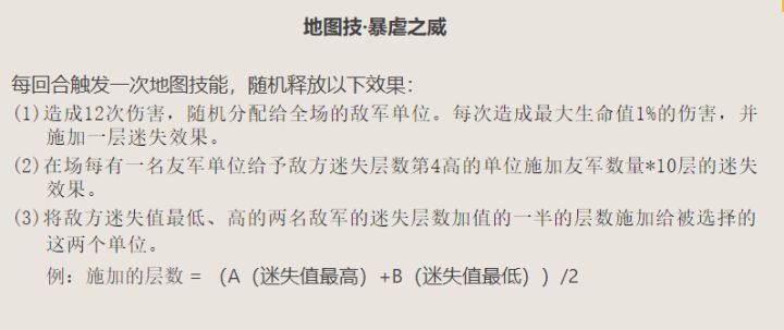 规则7:迷失值低于50降低((50-层数)*2%)输出,迷失值高于50增加((层数-50)*2%)输出出场武将及顺序:曹操、周瑜、邓艾、大乔、庞统、徐庶、步练师、刘备1、尽量一回合站好位置,人员之后不移动,主力法师(建议郭嘉)打boss;2、其他人连击施法或喂药给高层数武将减层数;3、不要出先手嘲讽、尽量不出物理输出(尤其有多动、无极、引导、乱舞、奋战等物理武将不要出);4、小兵不用管,
