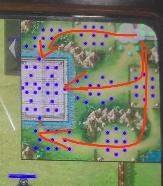 一、前言大家好,本期为大家介绍成都夺回战的攻略,这关被誉为最难的一关,比终章还有过之而无不及。原因是1.大将控局:禁止原力盾、先手。2.城外部队进城后即失败3.我军站位相当分散4.要保护4个拖后腿的友军,否则游戏失败🌟5.莫名其妙地疯狂闪退那么本期就让飞鹤顶着闪退给大家带来过关攻略二、过关思路1.关外部队不需要击破,挡住其不让其经过即可。建议在城门处如图堵路。我方1、2号角色