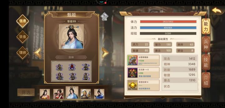 2.甄姬,彩扇,文武,神驹。带嘲讽,辅助输出,吸引无名小将和有名法师的法术,躲有名字的武将和法师的物理攻击。