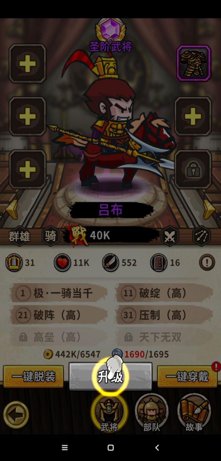 这个好像是个挂,才34级,一个赵云捅我武将一枪一个,捅我后排一枪一个我还觉得正常,但是打我黄忠,孟获什么的都是一枪一个,而且我打半天他还是99%,赵云不死一直就是99,其他武将都死了,就剩赵云还是99