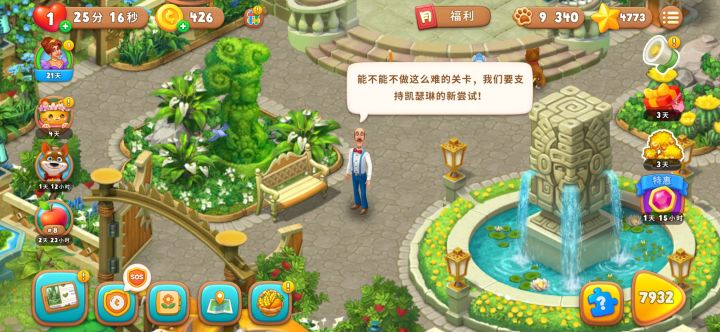 真心喜欢我的花园和小镇里的人们,可是关卡越来越难,越来越难,已经到了不开道具玩个十次二十次五十次都过不去的程度,或者是永远只差最后一步。没有玩家会喜欢这种感觉。我的花园是我的乌托邦,但是消消乐不是。