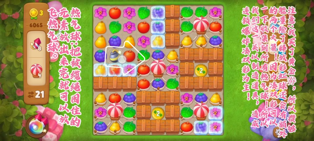关卡介绍 关卡目标:热气球、火/箭 关卡步数:22 关卡特殊元素:热气球、箱子、冰层 关卡难度:普通