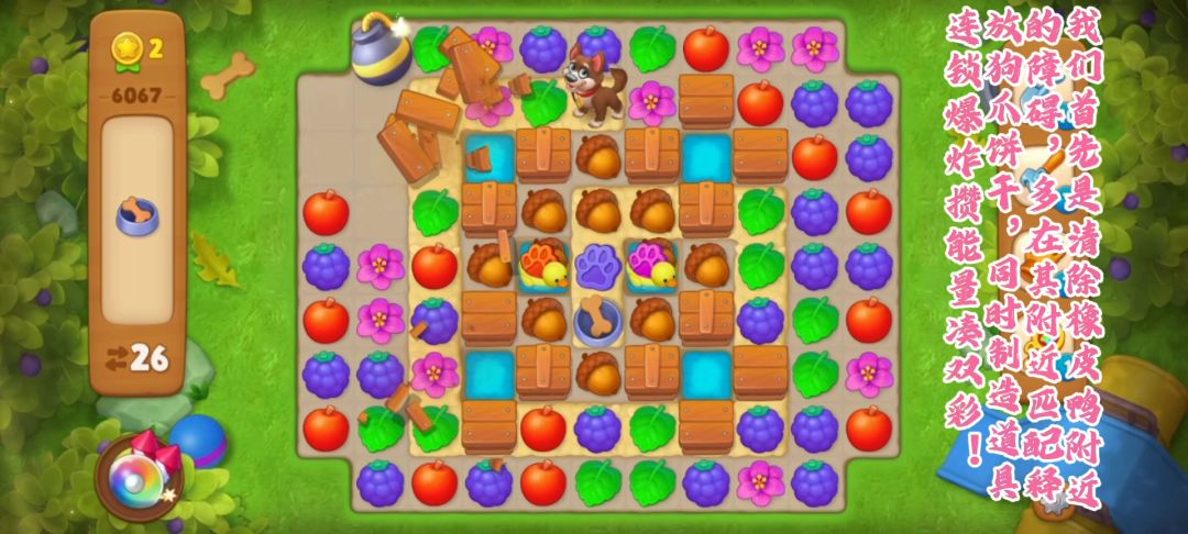 关卡介绍 关卡目标:狗狗到达终点 关卡步数:27 关卡特殊元素:箱子、橡皮鸭、狗狗、橡实 关卡难度:普通
