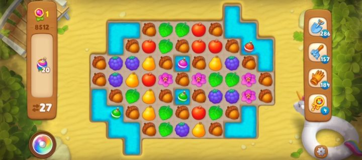 关卡目标 浮漂×20关卡步数 27关卡特殊元素 橡实关卡难度 普通特殊元素消除方法橡实:在橡实旁边进行元素匹配,橡实的消除次数根据是否有叶子来决定。关卡过关技巧①先观察一下开局,这一关一共是27步,过关目标是浮漂。②这一关的橡实只有一种,只要在橡实旁边元素匹配交换就可以消除橡实,只不过这一关的橡实无穷无尽,消除了还会出来。所以只要不耽误收集过关目标,就可以不用管它。③浮漂是在蓝色