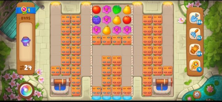 关卡目标 水桶×6关卡步数 24关卡特殊元素 绳索吊桥、墙壁关卡难度 普通特殊元素消除方法绳索吊桥:绳索吊桥的消除次数由吊桥上的绳索决定的,在绳索吊桥旁边进行消除元素才可以消除绳索吊桥。墙壁:用来阻挡元素被消除关卡过关技巧①先观察一下开局,这一关一共是24步,过关目标是水桶。②先消除最上面的绳索吊桥,按照颜色分类,一共五组绳索吊桥,在绳索吊桥旁边元素匹配四次,绳索吊桥就会消失,元