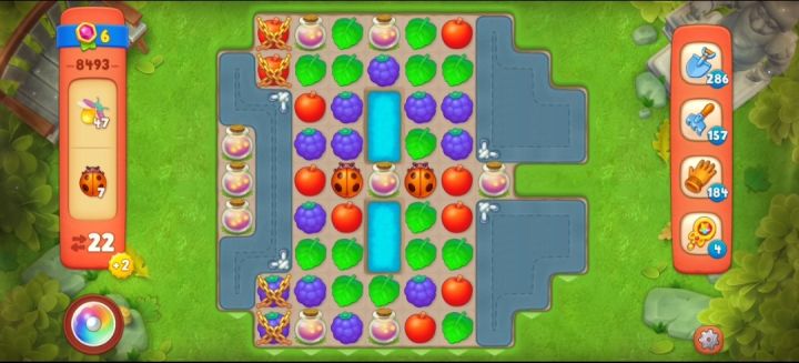 关卡目标 萤火虫×47、瓢虫×7关卡步数 22关卡特殊元素 锁链关卡难度 普通特殊元素消除方法帆布:在帆布旁边元素匹配,直到帆布上的白线全部消除,就可以消除帆布。锁链:锁链只能元素交换制造雷管炸弹,把锁链炸开,消除锁链的次数取决于锁链的根数。关卡过关技巧①先观察一下开局,这一关一共是22步,过关目标是萤火虫和瓢虫。②先消除帆布,在帆布线头旁边元素匹配,一根线头的元素匹配一次就可以
