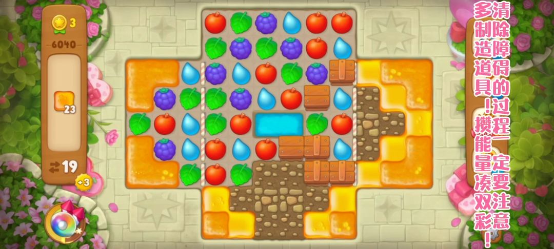 关卡介绍 关卡目标:蜂蜜 关卡步数:24 关卡特殊元素:蜂蜜、土块、箱子 关卡难度:普通