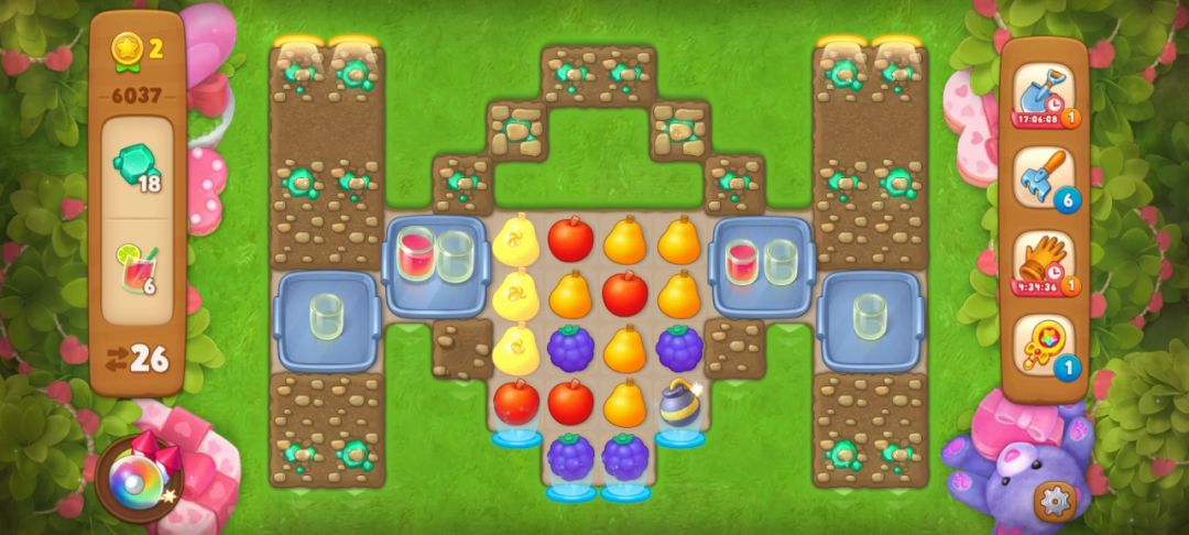 关卡介绍 关卡目标:糖果 关卡步数:26 关卡特殊元素:土块、皮纳塔、传送门 关卡难度:普通